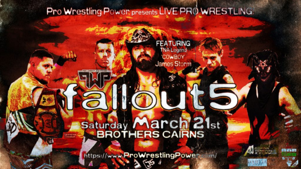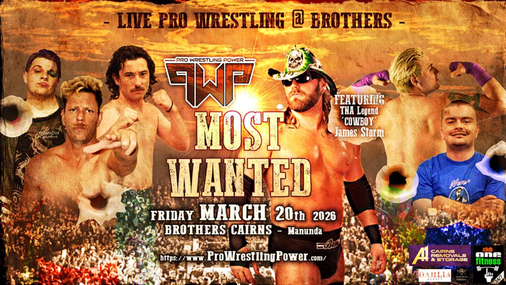Join us at Brothers Cairns on Saturday 21st March for Pro Wrestling Power | Fallout 5! This will be featuring Former TNA Superstar Cowboy James Storm! Don’t miss the chance to experience live professional wrestling in the club! Doors Open at 5:00pm | Show Commences at 5:30pm Get your tickets today!