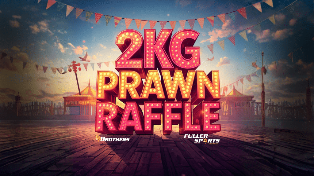 We are giving away 10 trays of 2kg Prawns, April 2nd. For your chance to win a tray you can purchase raffle tickets from 5.30pm in venue with draws from 6pm. $1 = 1 ticket $5 = 6 tickets